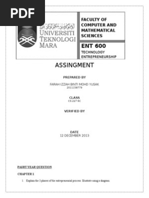 . Ent 600 technology entrepreneurship technology blueprint portable doc case faculty. ASSIGNMENT 1 ENT600 Nurul Syazwana Ahmad Fakrurazidocxpdf. She keep on answering very clearly and giving so many examples so that we can get the overview.
